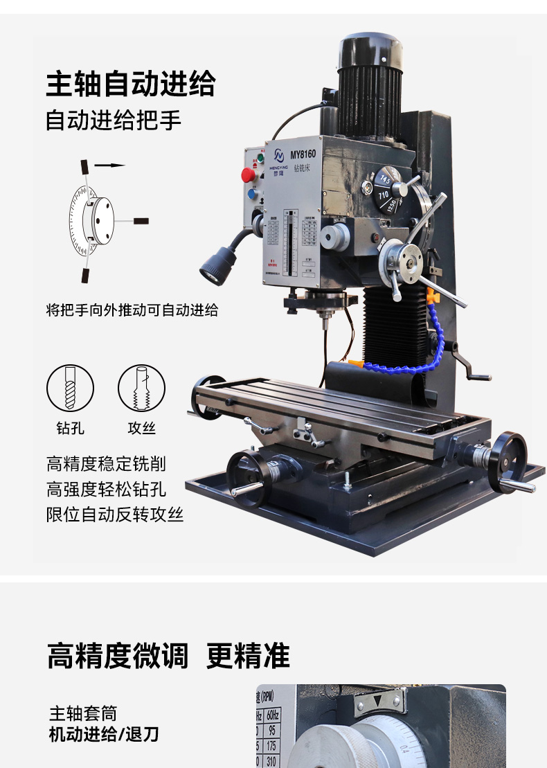夢鷹MY8160自動鉆孔鉆銑床大功率工業(yè)級小型銑床